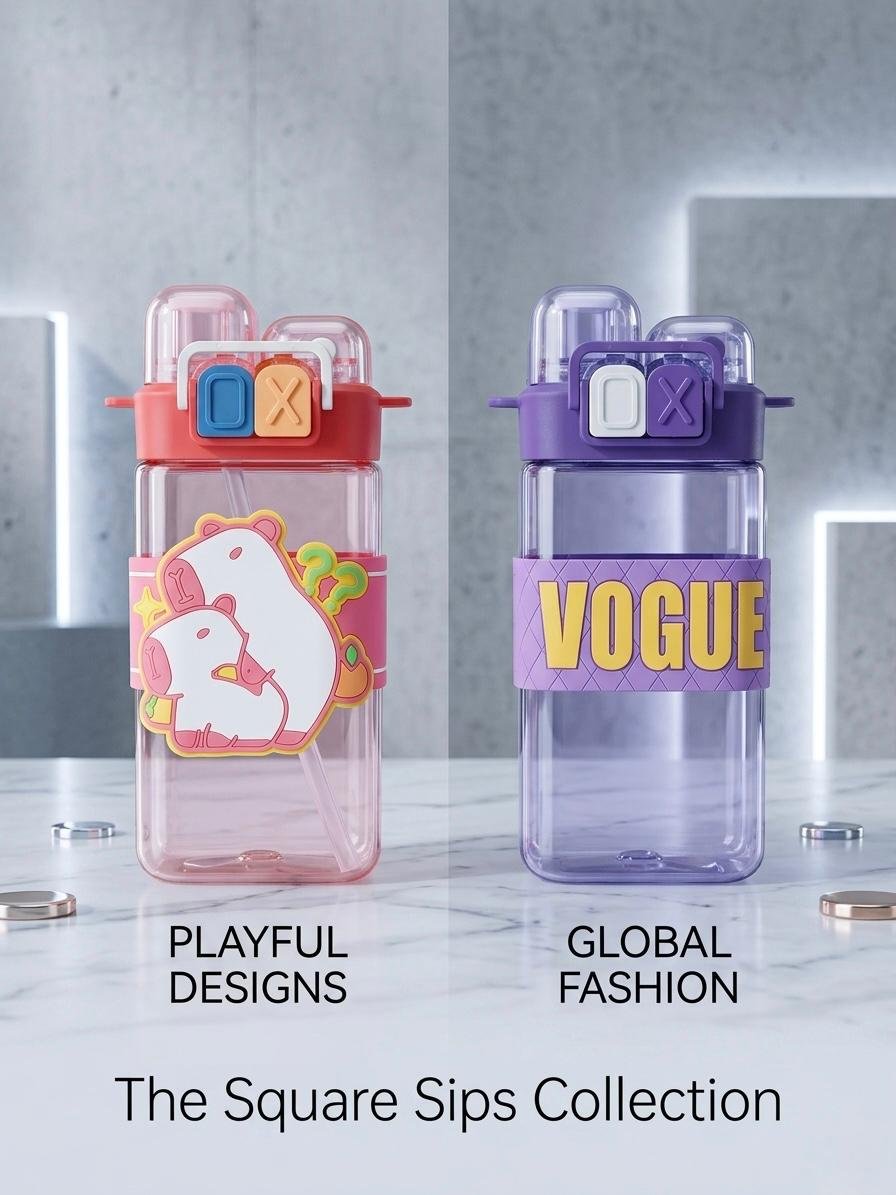 "Cute Animal Design: Attractive animal-themed designs make drinking water fun for kids, encouraging them to stay hydrated throughout the day. Dual-Use Cap: Features a 2-way lid that allows for easy sipping with a straw or quick pouring, perfect for different beverage types and drinking preferences. Leak-Proof and Spill-Proof: Designed with a secure, leak-proof lid to prevent spills, making it perfect for school, picnics, or travel. Kid-Friendly Size: 520ml capacity, ideal for small hands to hold and carry, providing just the right amount of water to keep kids hydrated without being too bulky. BPA-Free and Safe Materials: Made from high-quality, BPA-free plastic, ensuring the bottle is safe for kids to use daily. Easy to Clean: The wide-mouth opening and removable straw make cleaning simple, ensuring hygiene and freshness. Lightweight and Portable: Lightweight design with a carry strap makes it easy for kids to take it on the go, whether it's to school, the playground, or outdoor adventures."